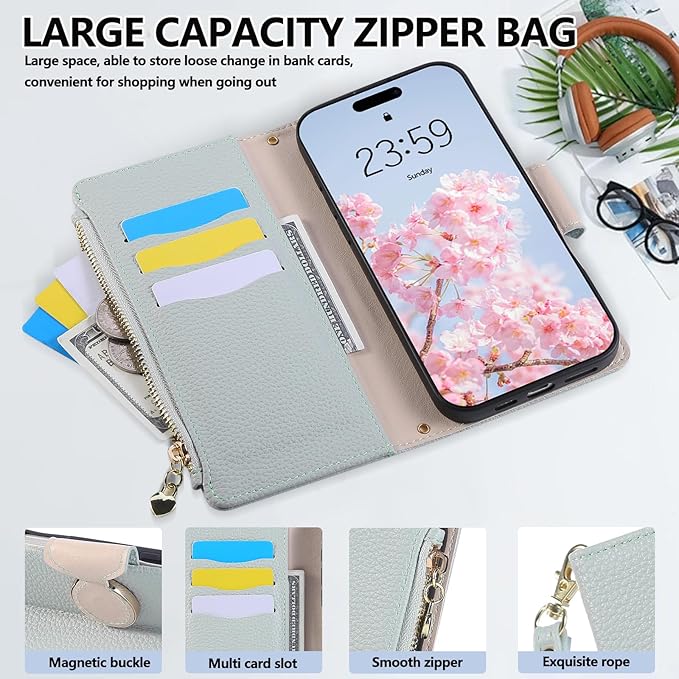 【カード収納&スタンド機能】 iphone17promax ショルダー ケースは多機能ポケットで使いやすさ&収納力満点の仕上がり、3つのカードスロットと、ファスナー型小銭入れを備えた充実した収納、クレジットカード、ICカード、コイン、名刺、小銭やお札などを収納できる。近所の買い物や犬の散歩などでは、スマホ1台だけで身軽に外出でき、通勤やお出かけにも便利。便利なスタンド機能付きで、好きな角度に調整してビデオ通話、Web会議、動画視聴、料理中のレシピ確認など、さまざまな場面で活躍する。