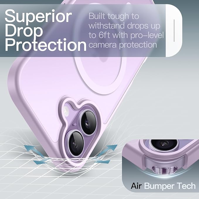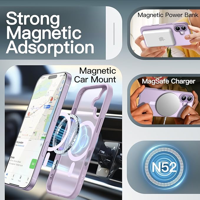 JETech iPhone 17 6.3インチ用 マグネットケース MagSafeに対応 半透明のマット背面 薄型 ミニマリスト 耐衝撃 フォンカバー (ラベンダー)