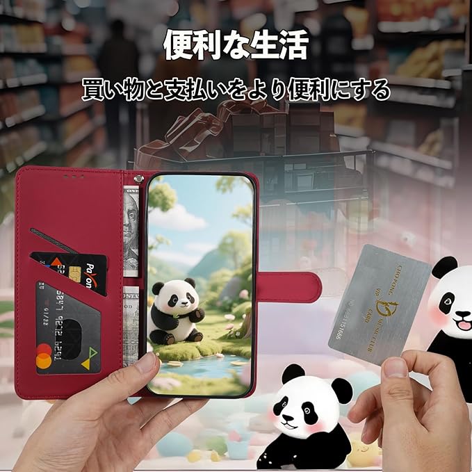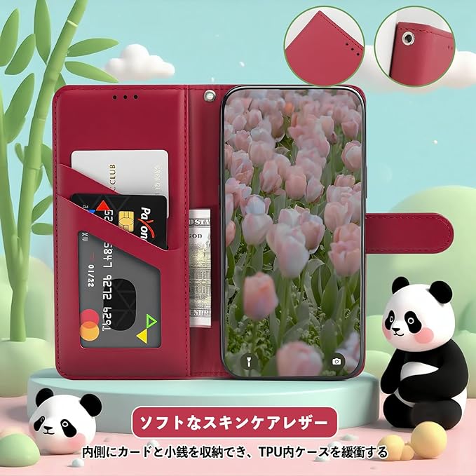 スマホケース 手帳型 と互換性のある いphone17promax ケース 手帳型 iPhone 17 Pro Max 携帯ケース iphone17promax ケース iPhone17プロマックス カバー あいふおん17ケースプロマックス 耐衝撃 磁気スイッチ 横置き機能 財布型 カード収納 かわいい小さなパンダ 適用の iphone17プロマックスケース -レッド