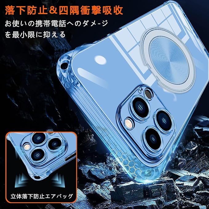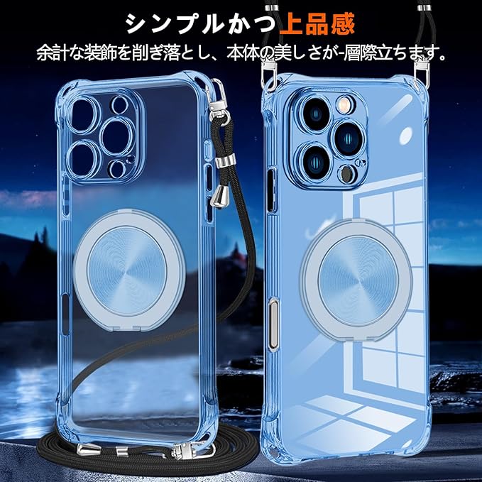 iPhone 17 Pro Max 用 ケース クリア MagSafe対応 リング スタンド 360度回転できる ワイヤレス充電 ネック ショルダー あいほん 17 pro max カバー 肩掛け 首掛け 斜めがけ 紐付き 韓国 耐衝撃 米軍MIL規格取得 スタンド機能 縦横両対応 落下防止 透明 TPU 薄型 軽量 黄変なしスタンド機能車載対応 アイフォン 17 promax スマホケース