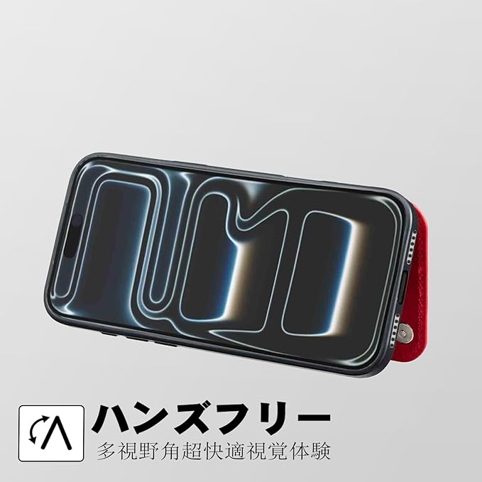 【横置きスタンド機能付き】カードケースの部分を開いてスタンドになれて、ちょっとした時にスタンドがわりとして大変便利です。スマホスタンド不要で好きな角度に調整でき、映画を観たり。