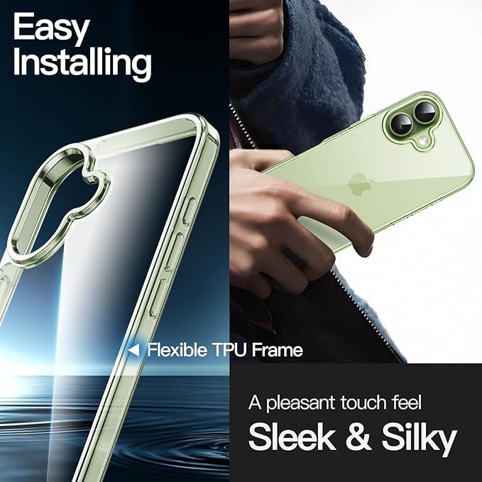 JETech iPhone 17 6.3インチ用 ケース 黄ばみなし 衝撃吸収 バンパーカバー 傷つけ防止 クリアバック (セージ)