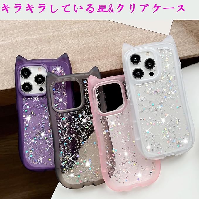 MuZiF iPhone 17 Pro Max 用 ケース クリア キラキラ 可愛い 猫耳 TPソフト 透明 かわいい ネコミミ 韓国 薄くて軽い 人気 おしゃれ 落下防止 耐衝撃 携帯カバー 17 Pro Max 用 スマホケース (iPhone 17 Pro Max 用,ピンク)