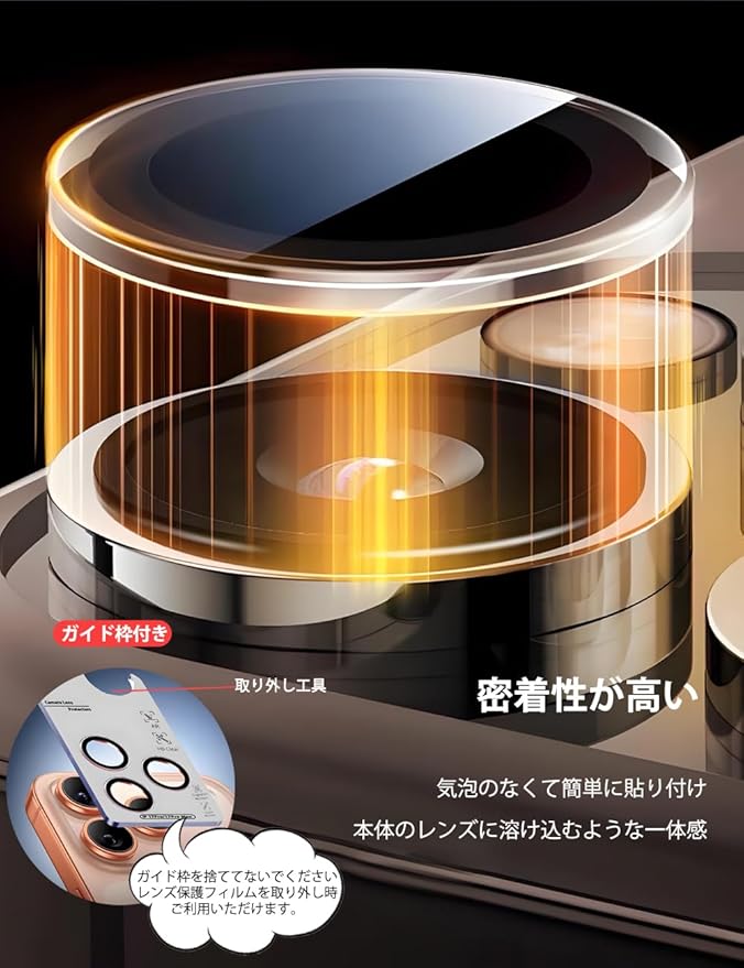 【アクリルエッジ素材 耐衝撃】:レンズ保護カバーはAR高透過率の強化ガラスとアクリルエッジ素材を採用し、鍵などの硬く尖ったものでも簡単には傷がつきません。メリットはレンズ面もレンズの周り部分も高透過率を持ちます。