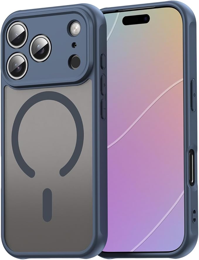 対応 iPhone 17 Pro Max ケース PC+TPU MagSafe対応 衝撃吸収 落下防止 米軍MIL規格取得 いPhone 17 Pro Max 半透明 カバー 黄ばみにくい スマホケース スマホカバー ワイヤレス充電磁気 薄型 (ダークブルー)SEIP17PMTPC-LAN