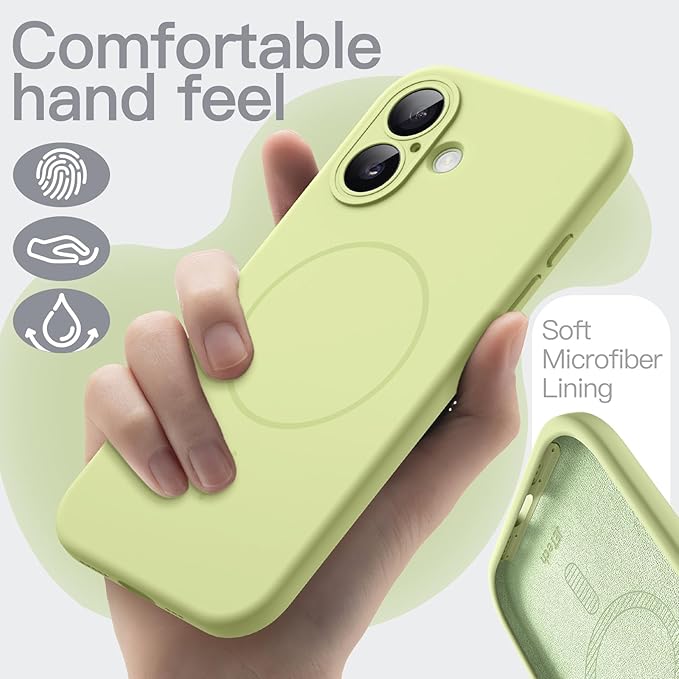 JETech iPhone 17 6.3インチ用 マグネットシリコンケース MagSafeに対応 シルキーソフトタッチ 衝撃吸収スマホカバー カメラレンズ保護 (グリーン)