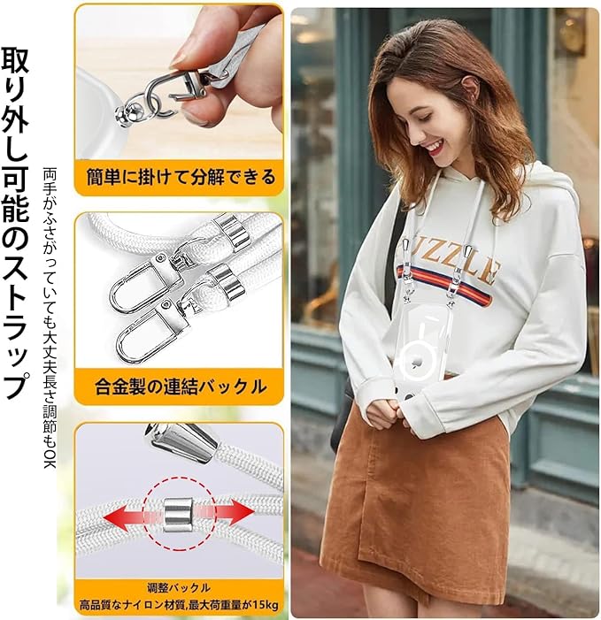 iPhone 17 Pro Max 用 ケース クリア ショルダー MagSafe対応 ワイヤレス充電 アクリル背面 耐衝撃 マグネット搭載 アイフォン17プロマックス ケース マグセーフ対応 耐久性 滑り止め 黄変防止(ホワイト)