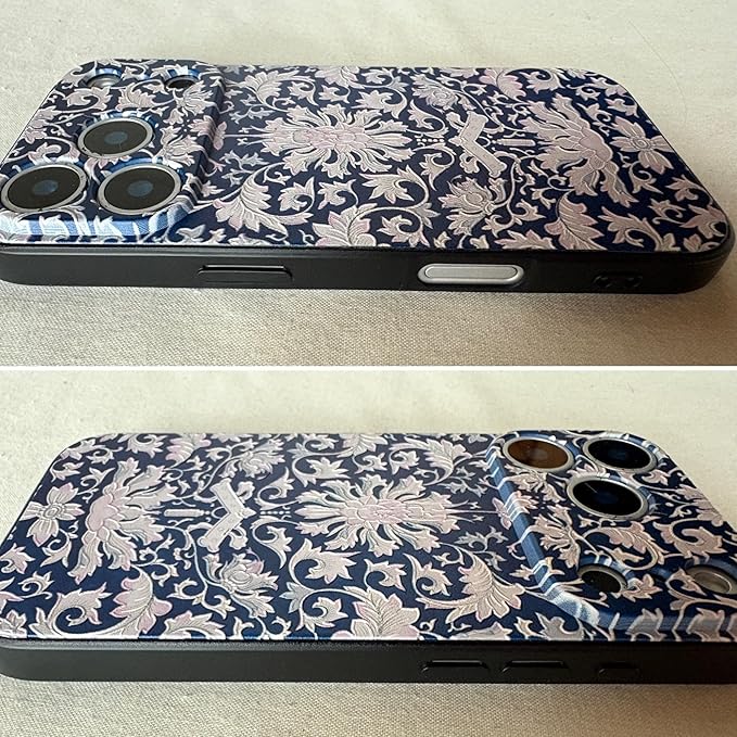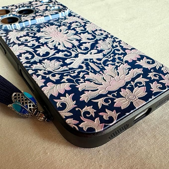 KOLO【宮廷 花草】iPhone対応 17 Pro Max 中国風 シノワズリのスマホケース スマホカバー(紺) iPhone17 Pro Max