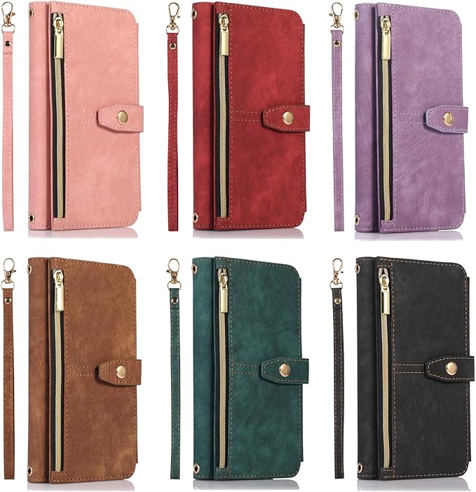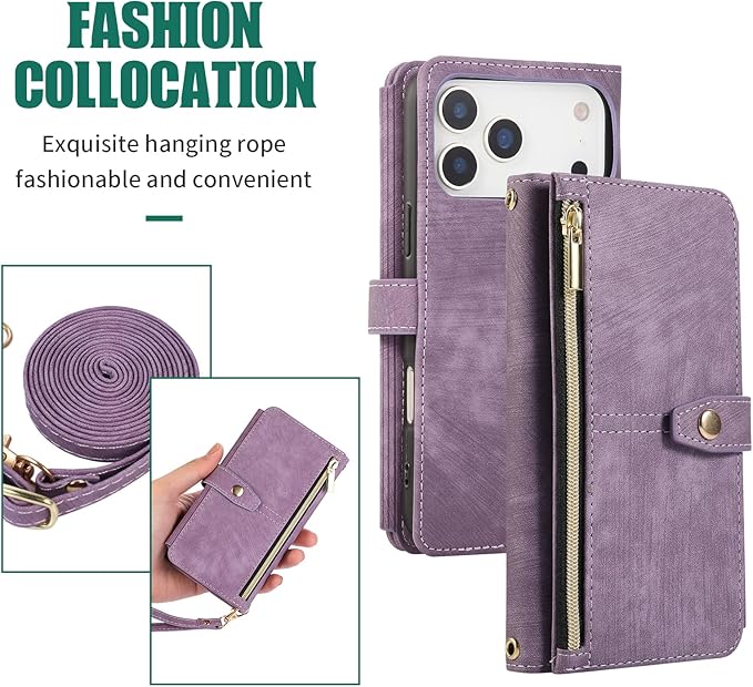 BonwFzin For IPhone 17 Pro MAX ケース 手帳型 ショルダー 適用 【 ストラップ 二本同梱】 アイフォン17プロマックス ショルダーケース IPhone17ProMAX 手帳 スマホケース ストラップホール付き バッグ マグネット 肩がけ 斜め掛け ファスナー ジッパー スタンド カード入れ レトロ パープル