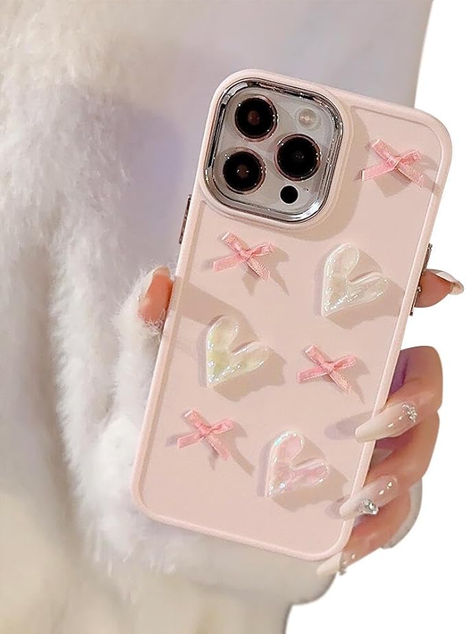 ケース For iPhone 17 Pro Max 愛 ハート 可愛い ボウノット パターン TPUカバー 衝撃吸収 落下防止 アイフォン 17 Pro Max 專用スマホ ケース カバー 薄型 特製スマホケース レンズ保護 スレ傷防止 女子力 ファッションクリエイティブかわいい かわいい携帯電話ケース(ピンク)
