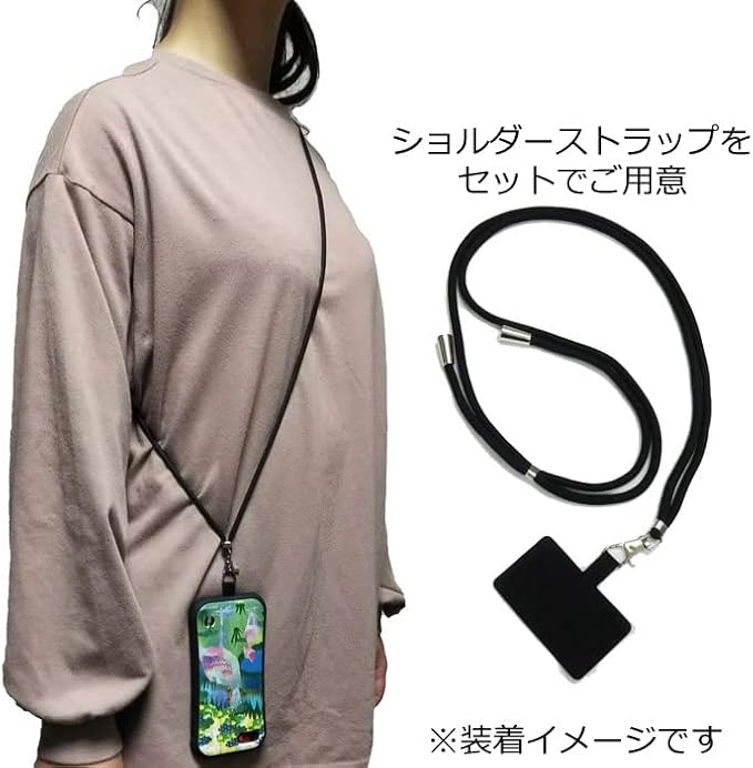 肩掛けもできるスマホショルダーストラップとカラビナストラップが付きます。