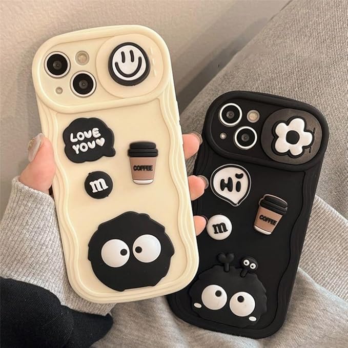 可愛い 3D まっくろくろすけ スマホケース iPhone 17 Pro Max 用 ケース コーヒー アイフォン 17 Pro Max 用 ケース シリカゲル保護カバー スマホ 傷つきにくさを向上 白