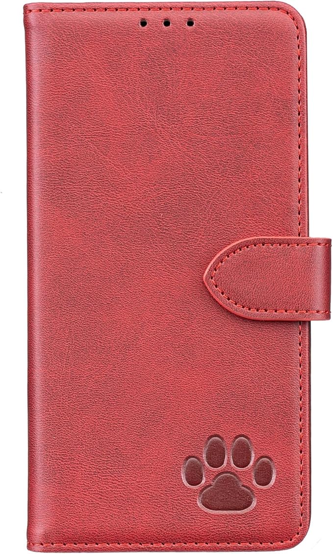 case for iPhone 17 pro max対応 カバー アイフォン17 プロ マックスに適合するケース 手帳型猫の足跡 肉球 型押し柄 カード収納 スタンド機能付き マグネット付き 全面保護 財布型 (D3-赤, iPhone17 pro maxに対応する)