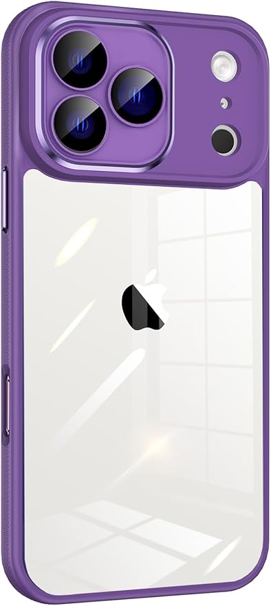 iPhone 17 ProMax用ケース クリア シリコン耐衝撃 軽量 透明な背面 カメラカバー付きの一体型 滑り止め 全面保護 黄変防止 指紋防止 かわいいアイフォン17プロマックスケース ディープ・パープル