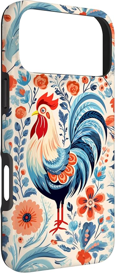 鶏 花柄 ヴィンテージ ニワトリ 農場の動物 スマホケース iPhone 17 Pro Max 用