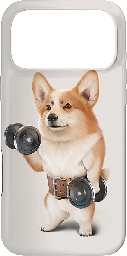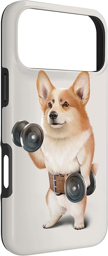 ウェルシュコーギー 犬 筋トレ ダンベル付き フィットネスジム スマホケース iPhone 17 Pro Max 用