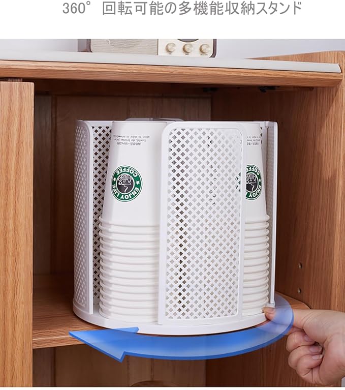 サイズ:直径約23.5cm、高22cm。360 回転可能の多機能収納スタンド