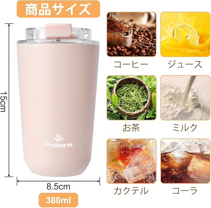 【保温・保冷効果が持続する真空断熱構造】Philorn タンブラーは保温6時間、保冷12時間を保持できます、真空断熱2層構造でしっかり温度をキープしてくれるので、夏は冷たい飲み物が結露せず、冬は熱い飲み物でも外側が熱くならないでシーズン問わず快適に使用できます。