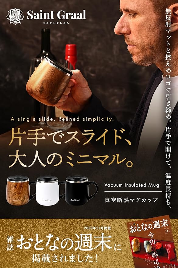 【マグカップ 詳細】 真空断熱 マグカップ 蓋付き サイズ:飲み口約7.9㎝、底部9.3㎝、高さ9.7㎝ 内容量:320ml 構造:真空断熱構造 素材:304ステンレス オーブン 電子レンジ 使用不可 食器洗対応(食洗器を使用しても本製品の性能には問題ございません。しかし食器洗浄機等を使用した際、他食器等との接触により傷がつく恐れがあります。使用時は、その点をご理解いただいた上で、お客様の判断と責任にてご使用ください。〈 名入れ 不可 〉 名前入れ や 文字入れ は行っておりませんのでご了承下さい。〈SaintGraal〉 セイントグレイル は「ワンランク上のライフスタイル」をコンセプトに高品質でエレガントなキッチン用品を展開しています。
