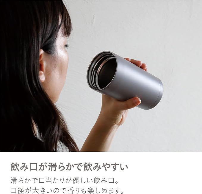 本体は口径(73mm)が広いので飲み物を注ぎやすく、お手入れするときも洗いやすい。パーツも分解できるので清潔にご使用いただけます