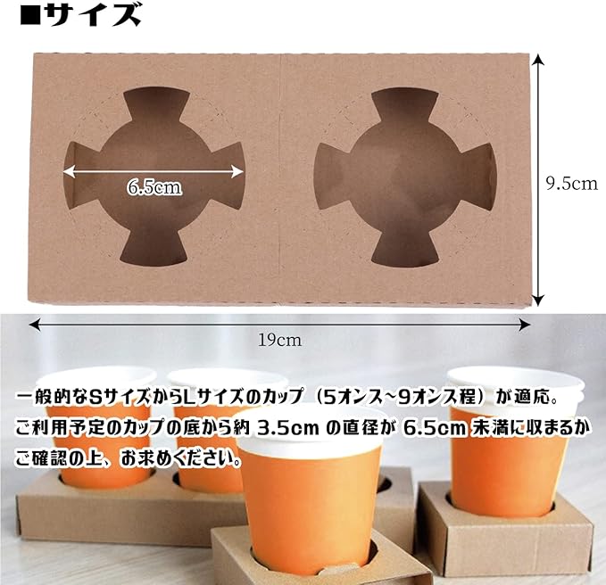 ドリンクカップホルダー 紙コップ 使い捨てコップ カップホルダー 段ボール 紙製 (2カップ用50枚セット)
