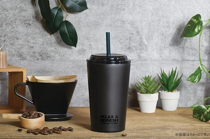 シンプルなブラックデザイン。カフェマグストロータンブラーシリーズ。