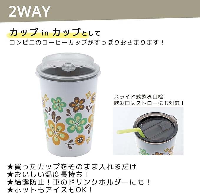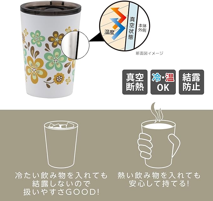 OGURA ステンレス タンブラー コンビニ コーヒーカップ フタ付き 真空 保温 保冷 マグ レトロ 昭和ロマン マーガレット