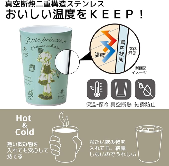 小倉陶器 ステンレス キープ タンブラー 450ml 保温 保冷 コンビニコーヒー 真空 断熱 ホームオフィス セラミック シンジカトウ リトルプリンセス