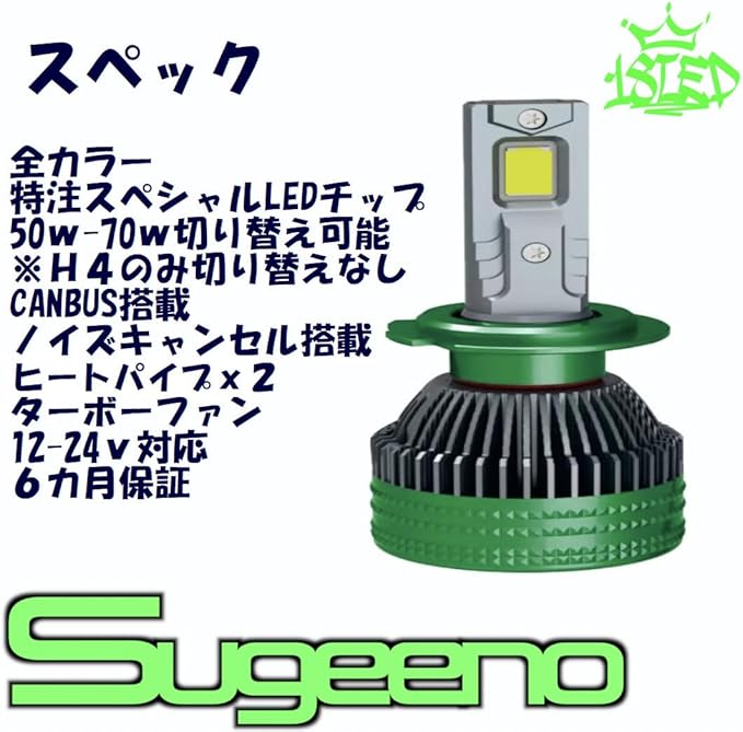 【出力切り替え機能】 50Wモード/70Wモード切り替え可能 【特注12チップ搭載】 通常の45mil・12チップではなく、 より高性能な55mil LEDチップを採用しています。 照射がよりワイドになり、 フォグランプの照射範囲が大幅に向上します。 【高耐久・高放熱設計】 削り出しアルミボディを採用。 赤銅冷却プレート、 赤銅ヒートパイプ 2本を搭載し、 優れた放熱性能を実現しています。 【サイズ】 全長85mm/台座後部36mm/ファン直径37mm(H4) 【機能・性能】 360 角度調整可能 ノイズキャンセリング対応 キャンセラー搭載 ※一部の外車では、別途キャンセラーが必要になる場合があります。 【防水・防塵性能】 IP68