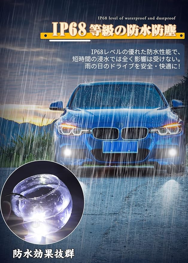 【IP67防水&一年保証】●IP68防水等級!雨の時良好な視界を保つ!日常の使用が安定、-40℃~+80℃の環境でも瞬間作動出来ます。様々な天候でも楽に運転を確保できます。●1年保証が付いています。LEDヘッドライトは出荷前に全検品して、ランプ点灯確認済みでした。商品到着後、速やかに商品の状態をご確認ください。保証期間内に不具合、故障がございましたら、ご遠慮なくメールにてお問い合わせてください。交換または返金対応させていただきます。「アカウントサービス」→「注文履歴」→「出品者に連絡する」から、ご連絡をいただきますようお願い申し上げます。24時間以内にで迅速に対応させていただきます。