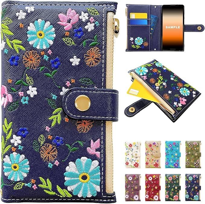 Google Pixel 9a 対応 ケース 手帳型 カバー スマホケース スマホカバー おしゃれ花刺繍 ネイビー