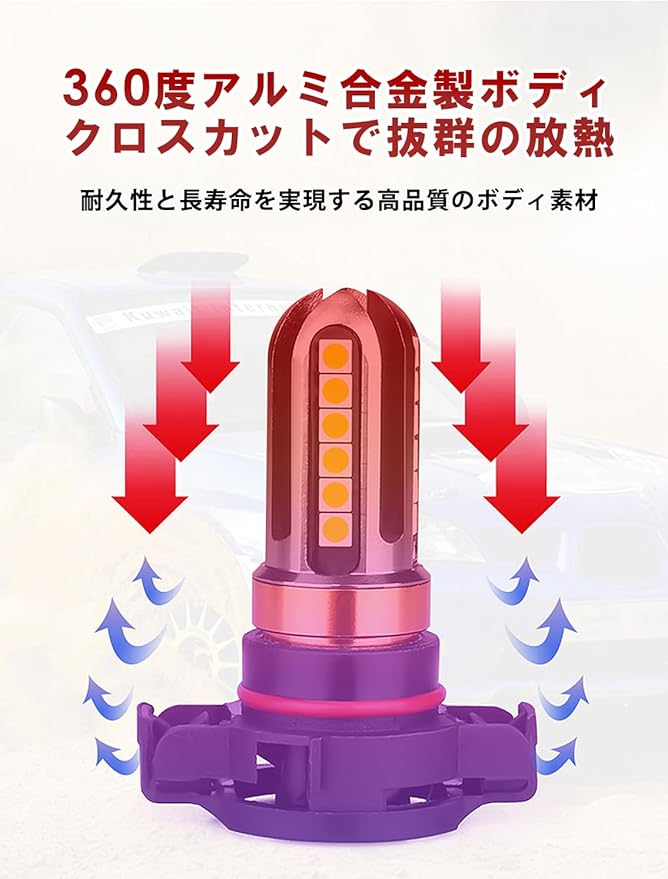 珍しいアンバー色のLEDバルブ アイデア次第でウィンカーやDRLなどに。H11 H8 H9 共通