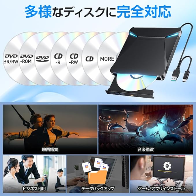 外付け cdプレーヤー 外付け光学ドライブ 書き込み可能 cd dvdドライブ