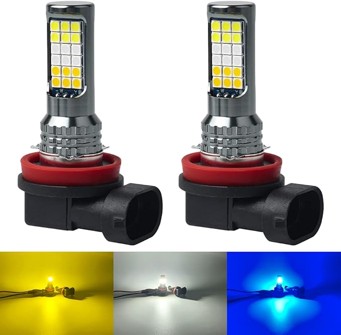 H8 H11 H16 LED フォグランプ 黄色 白 青 3色切り替え フォグ バルブ イエロー 3000K ホワイト 6000K ブルー 15000K 3色 フォグ球 LEDバルブ ファンレス 一体型 12V 車用 LEDライト 2個入