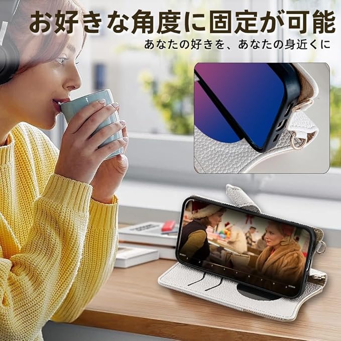 快適な持ち心地と使いやすさ: 付属クロスボディチェーン、全長120 cm。金具の装飾が美しさと上品さを漂わせてます。斜めがけ、肩掛け、通勤、旅行、犬の散歩、山登り、海へ行く、買い物、外食、重い荷物を持っている時、子供を連れて外出する時もスマホを紛失すること心配なく両手が解放されます。また、マグネット式の留め具により、片手で簡単に開閉ができ、スタンド機能も兼ね備えています。