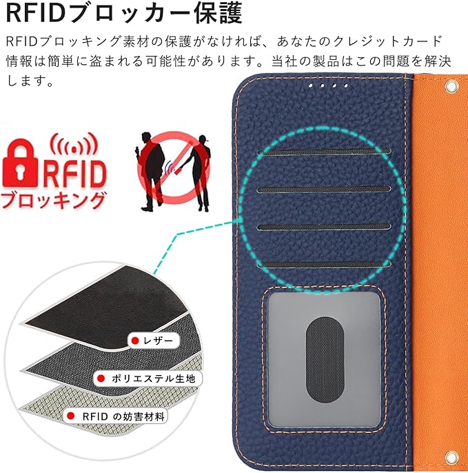 【高品質デザイン】外装はレザー製で、tpu素材に比べ、優れた耐衝撃性.カードスロットはRFIDブロック素材の保護設計で、クレジットカード情報が盗まれるのを防ぐことができます。スタイリッシュな外観、優れた耐傷性と防塵性能。変形しにくく、完全な保護を提供することができます。