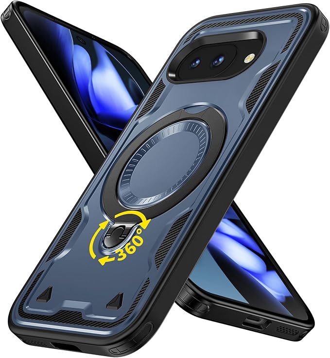 Google Pixel 9a 用 ケース 耐衝撃 スタンド付き Magnetic対応 グーグルピクセル9a カバー リング TPU+PC ワイヤレス充電 米軍MIL規格取得 スタンド機能 (ブルー)117-PX9A-09TS