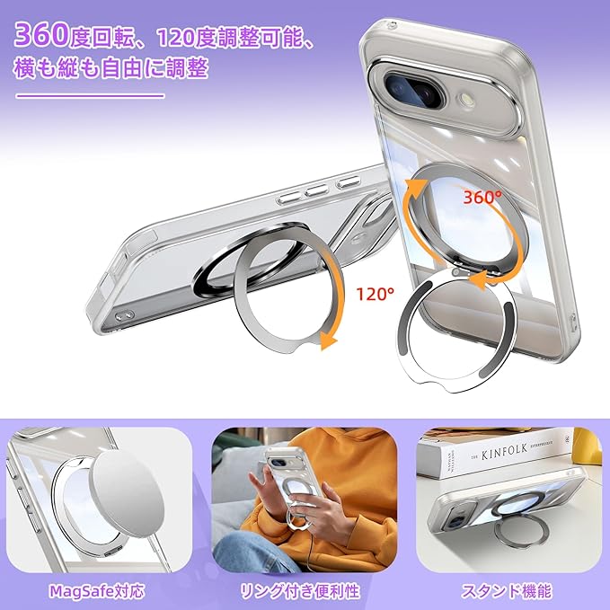 [ShinKin] スマホケース Google Pixel 9a 用 ケース カバー 透明PC + TPU素材 ケース リング付き カバー スタンド機能 スマホケース 透明レンズフィルム保護機能付き 強化された保護 携帯電話のレンズフィルム 軽量 耐衝撃 擦り傷防止 落下防止 車載ホルダー 360 回転 ケース Google Pixel 9a 用 (ホワイト)