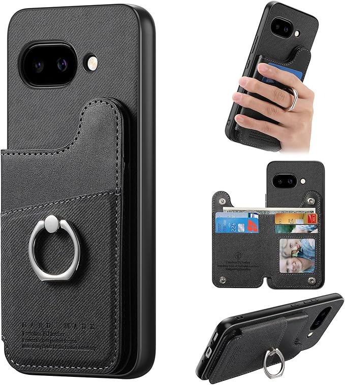 Google Pixel 9A ケース 手帳型 ピクセル9a ケース 手帳型 pixe9aケース 財布型 背面カード収納 リング付き スタンド機能 グーグルピクセル9aケース スマホケース googleピクセル9a Googlepixel9a 携帯カバー RFIDブロッキング PUレザー 耐摩擦 耐衝撃 シンプル おしゃれ ぐーくるぴくせる9a スマホカバー リング - ブラック