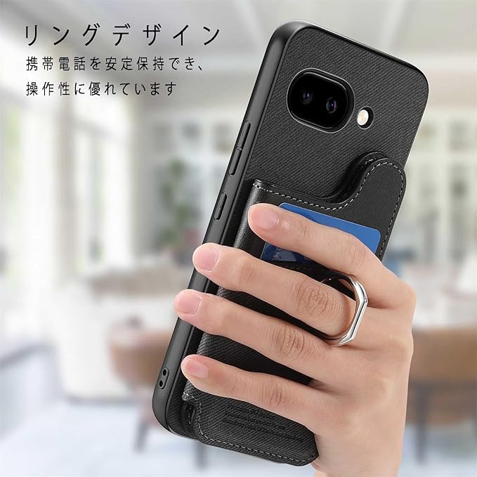 カード収納:Google pixel 9a ケース 手帳型の背面にはカードホルダーがあり、2つのカードスロットと現金ポケットがあり、免許証、クレカ、Suica、現金、鍵を収納できます。グーグルピクセル9a ケース リング付きは無線周波数識別(RFID)ブロッキングテクノロジーを使用して、ICカードなどの個人情報がリモートスキャンによって漏洩するのを防ぎます。ただし、特別な注意が必要です。盗難防止スワイプを備えているため、カードをカードホルダーに入れてもスワイプできない。乗車のためにカードをスワイプする必要がある場合は、Suica取り出してスワイプする必要があります