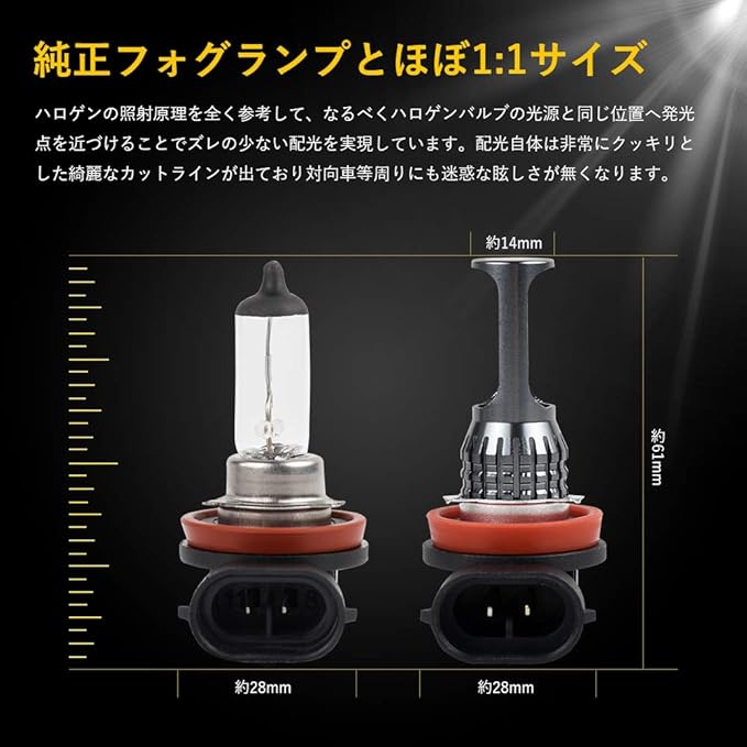 【発光効率に優れ】高品質3030SMDチップ採用、均一 高効率の発光特典を持って、超輝度で普通のチップと比べ発光率はアップします。市販のハロゲンより省エネルギーの上で、明るさは大幅にアップ。夜間の走行が非常に楽になり、安全に運転しています。