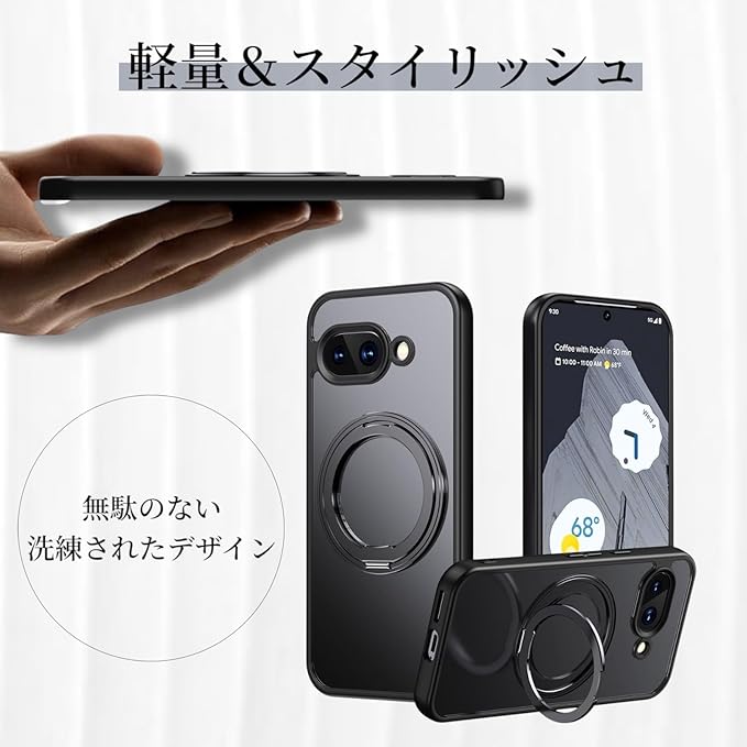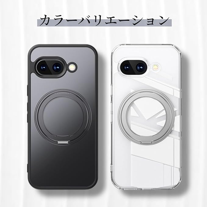 Google Pixel 9a用 ケース MagSafe対応 リング付き 360 回転スタンド 半透明マット 耐衝撃 カメラ保護 ワイヤレス充電対応 指紋防止 黄ばみ防止 ストラップホール付 グーグルピクセル9a カバー (ブラック)