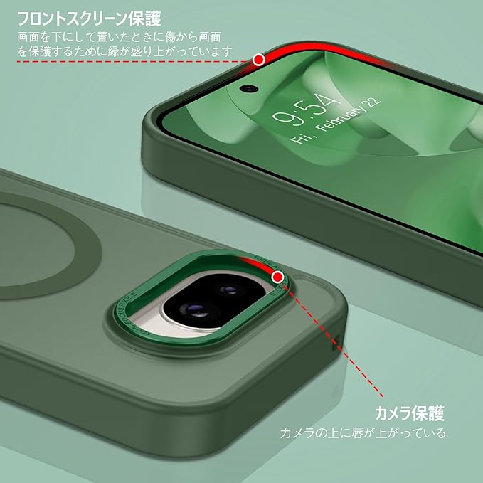 GaoBao Google Pixel 9a ケース グーグルピクセル9a ケース Magsafe対応 PC+TPU 黄ばみにくい ストラップホール付き ワイヤレス対応 滑り止め カバー 半透明マット 画面レンズ保護 指紋防止 耐衝撃 グリーン