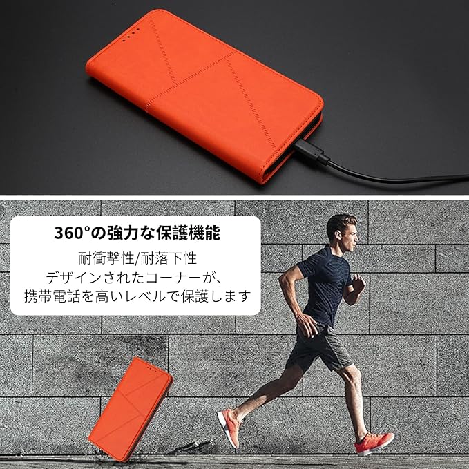 Google Pixel 9a ケース 手帳型 財布型 高級レザー カードポケット付き Kitzomi ピクセル9a 用 携帯カバー カード収納 耐衝撃 スマホケース 360度保護 マグネット式 スタンド機能[オレンジ]