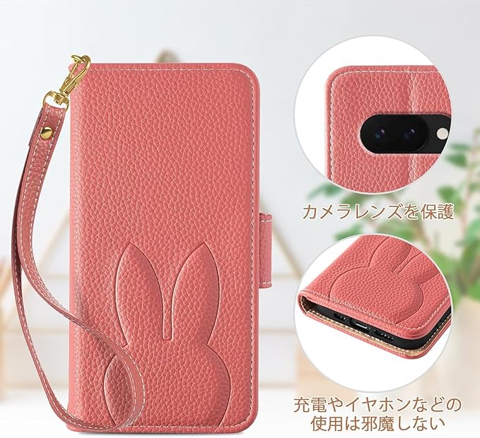 Vokpok対応 Google Pixel 9a ケース 手帳型 PUレザー 可愛いどうぶつ 兎柄 手触りも色合いも あふれる 女性の グーグルピクセル 9A 財布型ケース カード収納機能 スタンド機能 全面保護 Pixel 9A スマホケース 簡約美しい ストラップ付き ある滑らかな手触り 家族、友達の素晴らしい贈り物 ピクセル9a ケース, スイカレッド