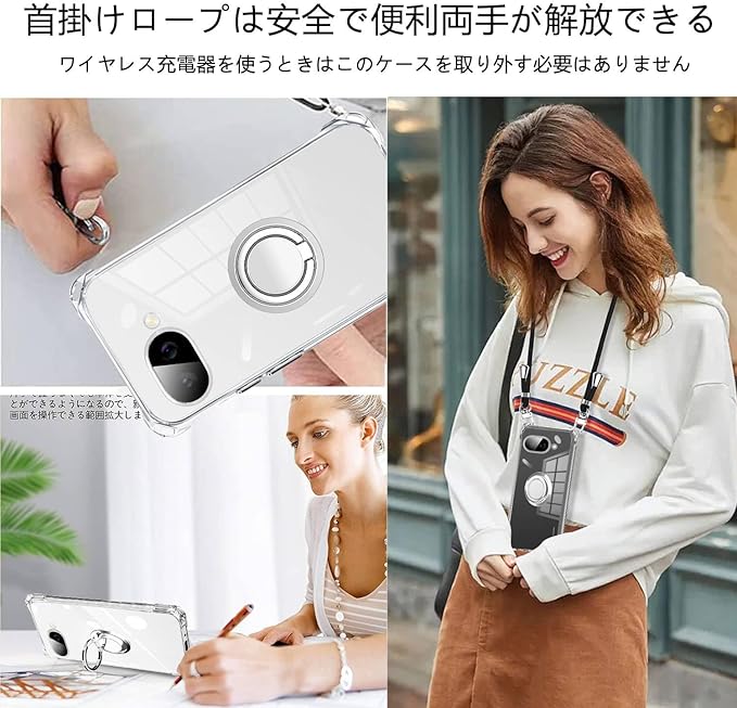 Google Pixel 9a ケース クリア ネック リング付き ショルダー pixel 9a ケース 耐衝撃 対応 ピクセル9a スマホケース 肩掛け 斜めかけ 縄掛けケース 透明 TPU ストラップ付き 携帯ケース 薄型 軽量 紐付き ネックストラップ ショルダー 肩掛け 縦/横 2WAY 長さ調整可能 取り外し可能 落下防止(縄掛け-ブラック)