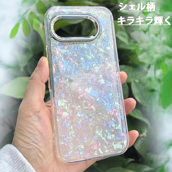 スマホケース 対応 Google Pixel 9a クリアケース 透明 キラキラ フラッシュ シェル柄 貝殻柄 かわいい スフとTPU 傷防止背面 滑り止め 衝撃吸収 おもしろい キャラクター ストラップ穴 女性人気 グルピクセル9a 携帯電話カバー (マルチカラー, Google Pixel 9a)
