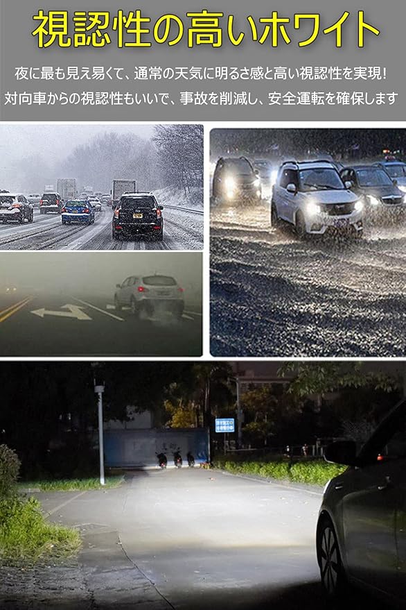 ➊高輝度:このh8/h11 ledフォグランプは両面抜群の視認性高品質3570 CSPチップ搭載採用して、ハロゲンより50%省エネなのに300%明るさUP!超輝度で、ハロゲンより大幅に視認性を高めています。大雨の中屋道の悪い路面を走行しても高い耐久性を発揮し永くご愛用していただきます。特に夜間の雨 雪 霧などの悪天候で威力を発揮する光色。