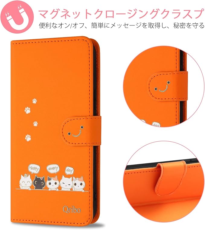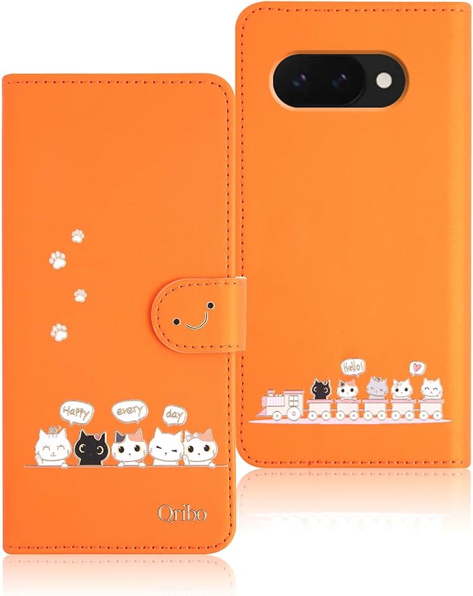 Google Pixel 9a ケース 手帳型 ピクセル9a 手帳ケース Pixel9a カバー シンプルなのに可愛いデザイン エンボス加工猫柄 うれしい気持ち 6.3インチ対応 グーグルピクセル9aケース ピクセル9aカバー グーグル Pixel9a スマホケース ピクセル9a ケース 手帳型 薄型 防水 の耐久性 滑り防止 美しい 贈り物 友達 - オレンジ