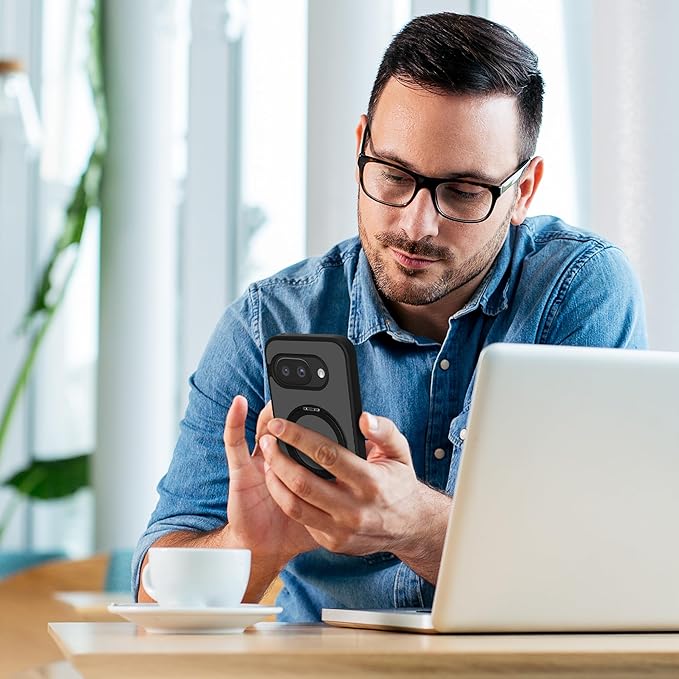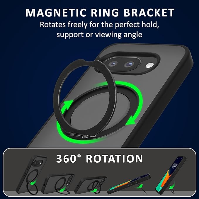 商品タイトル(最適化済み)kalibri スタンドリング付きスマホケース - Google Pixel 9a 対応 360 回転式キックスタンド ハードケース MagSafe対応 - 黒色/半透明